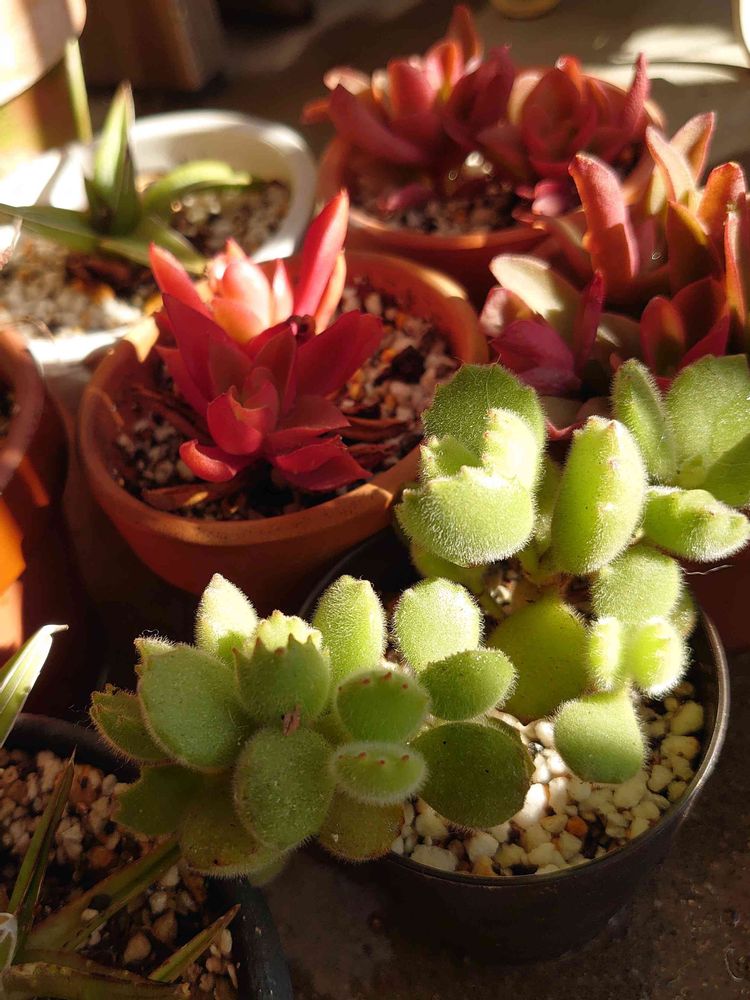 こんにちは🍀いいお天気ですね(*^^)🌱✨熊童子はモケモケで可愛いですよね💚✨無くなりそうだったのがここまで回復しました(⁎˃ᴗ˂⁎)🌱✨火祭りさんもキレイに紅葉してて可愛いです❤️ありがとうございます💕