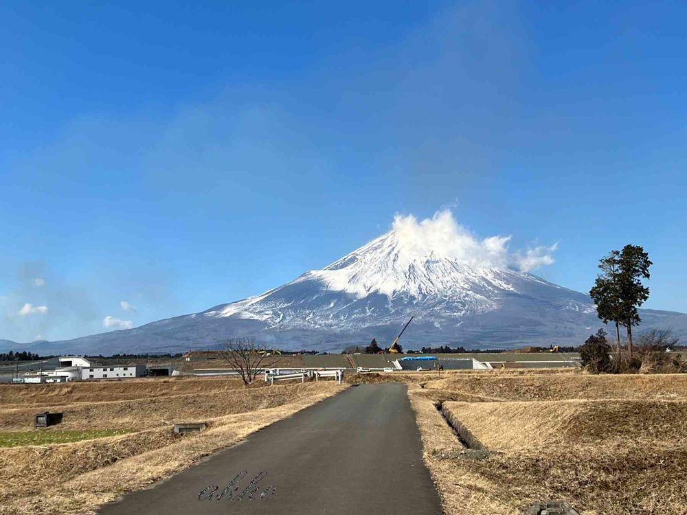 富士山はだいぶ雪が溶けて、残った雪も風で飛ばされてるような、白い雲が湧いています‼️