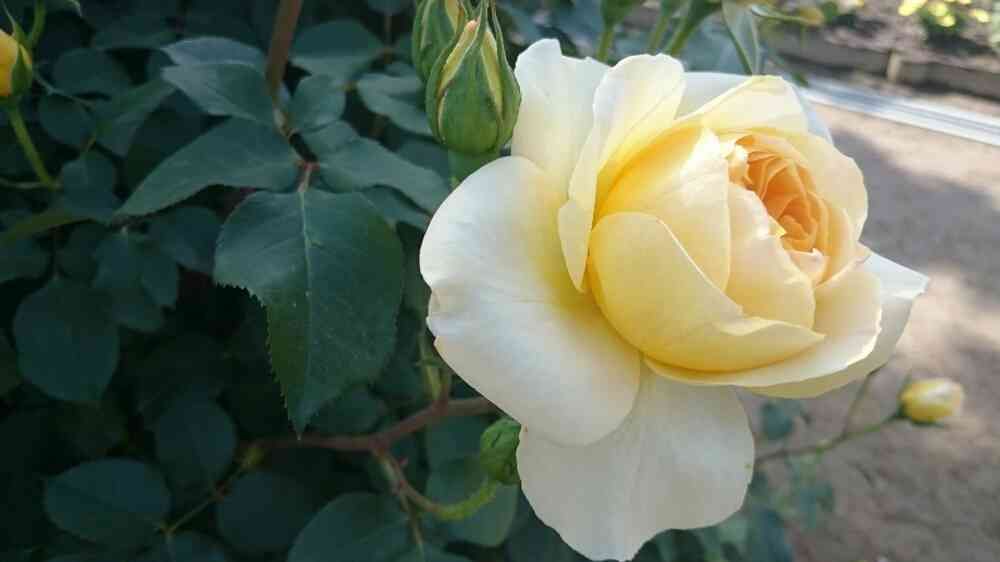 イイネ、有り難う御座います。こちらの🌹はクリーム色とイエローの間の色なんでしょうか。優雅で素敵💘💮