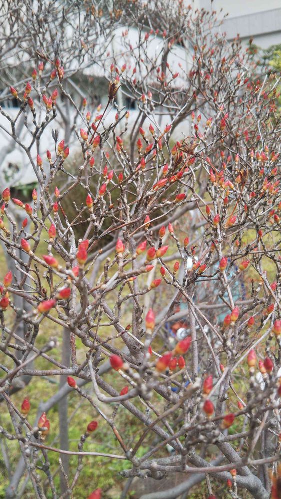 ドウダンツツジの芽が赤く膨らんで来ています。