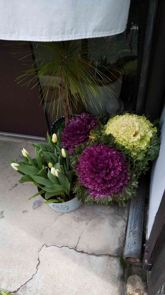 おんぶバッタさんのチューリップ,葉牡丹,大王松の投稿画像