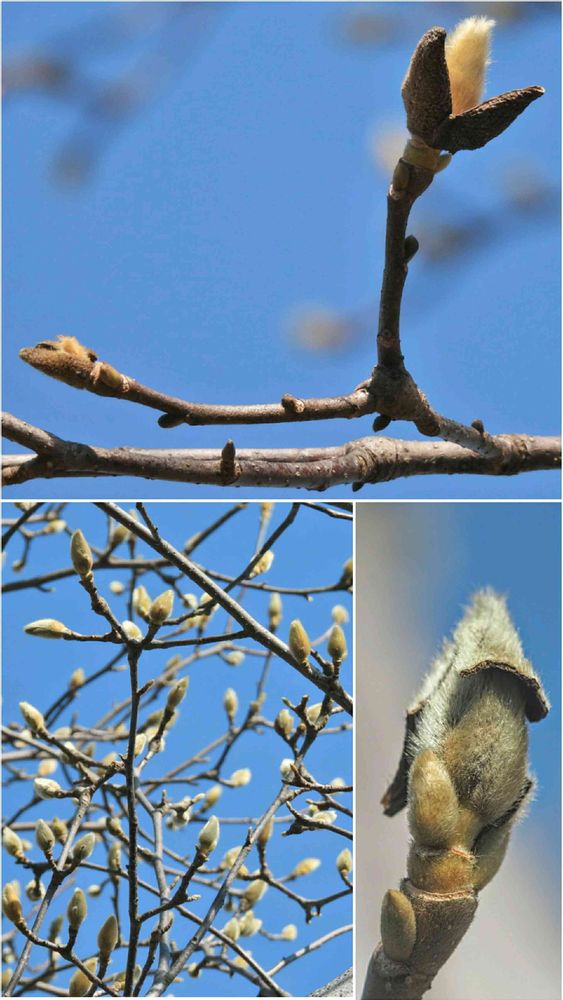 そろそろ厚いコートを脱ぐ子が出始めた立春、ハクモクレンの梢♪