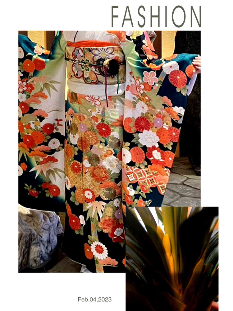 私は薔薇が好きですが、昨今の薔薇やダリアなどの柄の着物&フリルやレースをあしらった小物使いのお着物より(もちろんそれも素敵ですが)このようなお着物の柄を大変好ましく思います✨