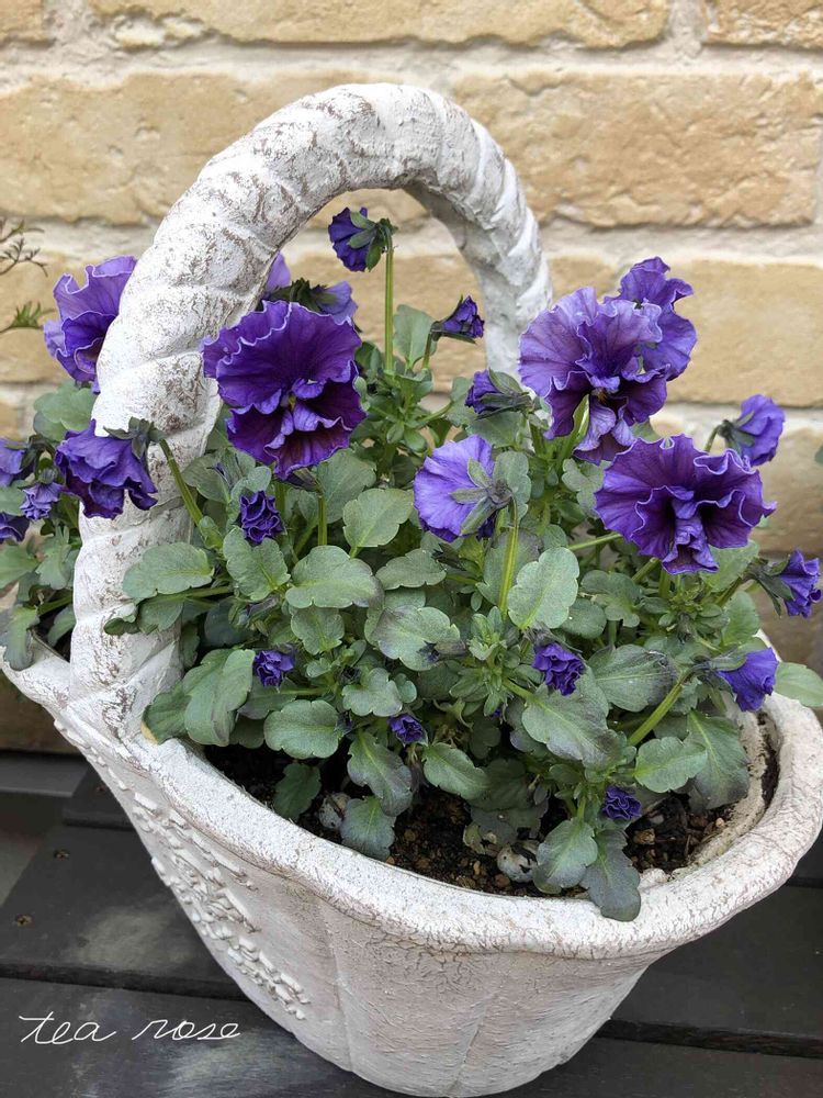 濃い紫も白いバスケットの鉢に合ってて素敵ですね