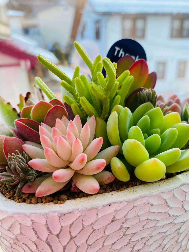 ピンクの多肉ちゃんの名前がわかりませんが、凄く可愛いです🥰