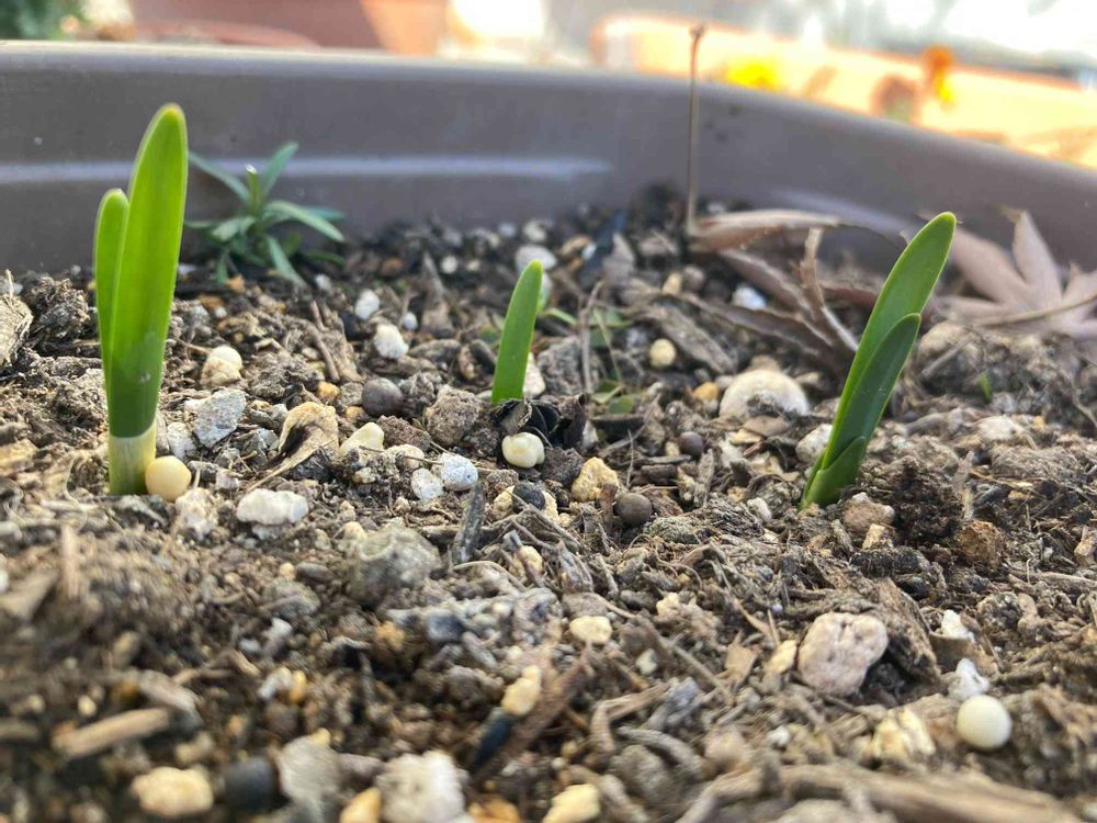 球根の芽が続々と🌱出てます。