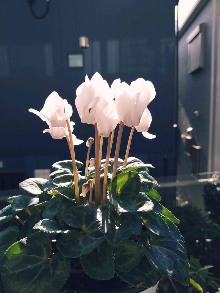 バルコニー/ベランダ,シクラメン,白いガーデンシクラメンの投稿画像