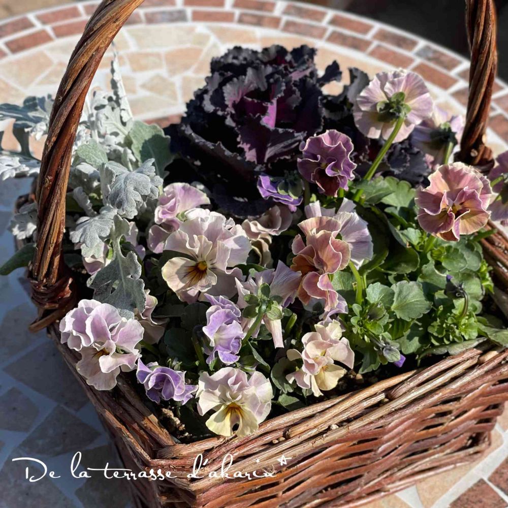 他の花で寄せ植えしてあったのですが、渋い葉牡丹と白妙ぎくを残して、植え替えました😃
