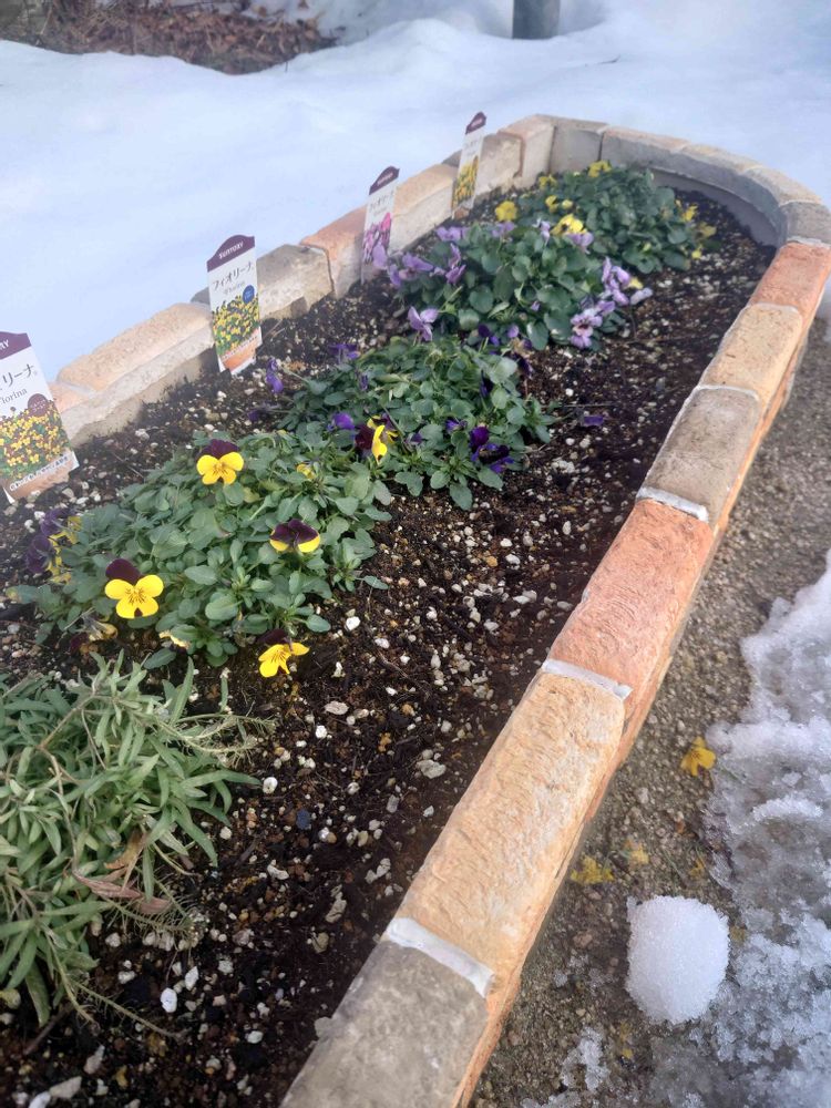 昨日・今日、ようやく降雪がない日が続いたので、花壇のフィオリーナさん達も日光浴できたようです☀