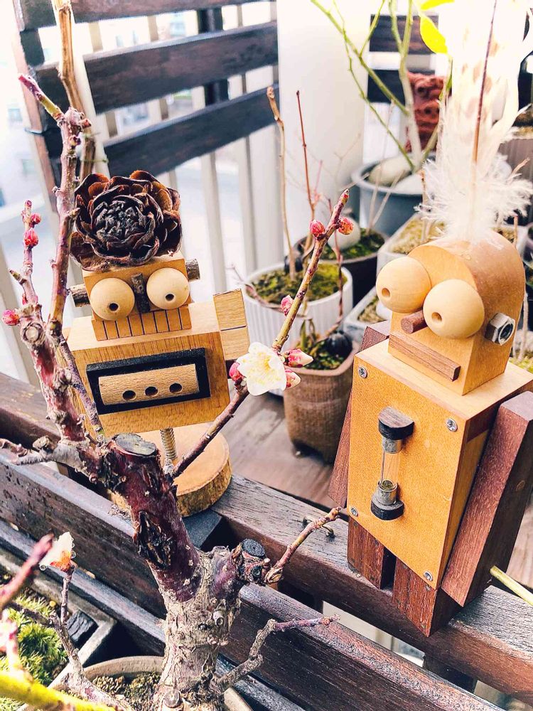 僕、ウメが大好きなんです😍 香りも花も、枝ぶりも、その歴史も! そんな大好きなお花を、ロボくんやボットくん、GSのみなさんと愛られて、幸せです🤗
