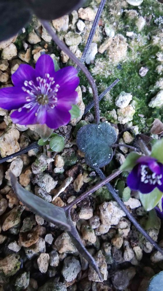 可愛い雪割草が咲いたね〜雪割草小さな花でシベが素敵〜紫💜の濃い色もいい感じデス〜✨✨✨👍