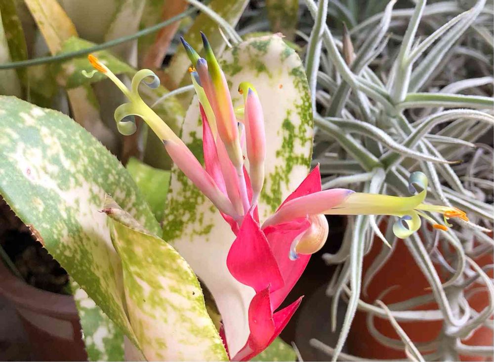 ビルベルギア シャビーチックが咲きました✨。苞の色は紅生姜っぽいかも💕