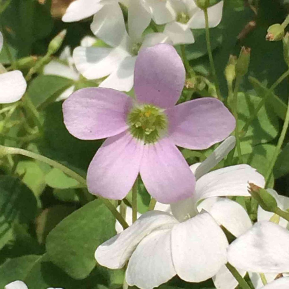 白いオキザリスの中にぽつんとピンクのオキザリスが咲きました。可愛い♡