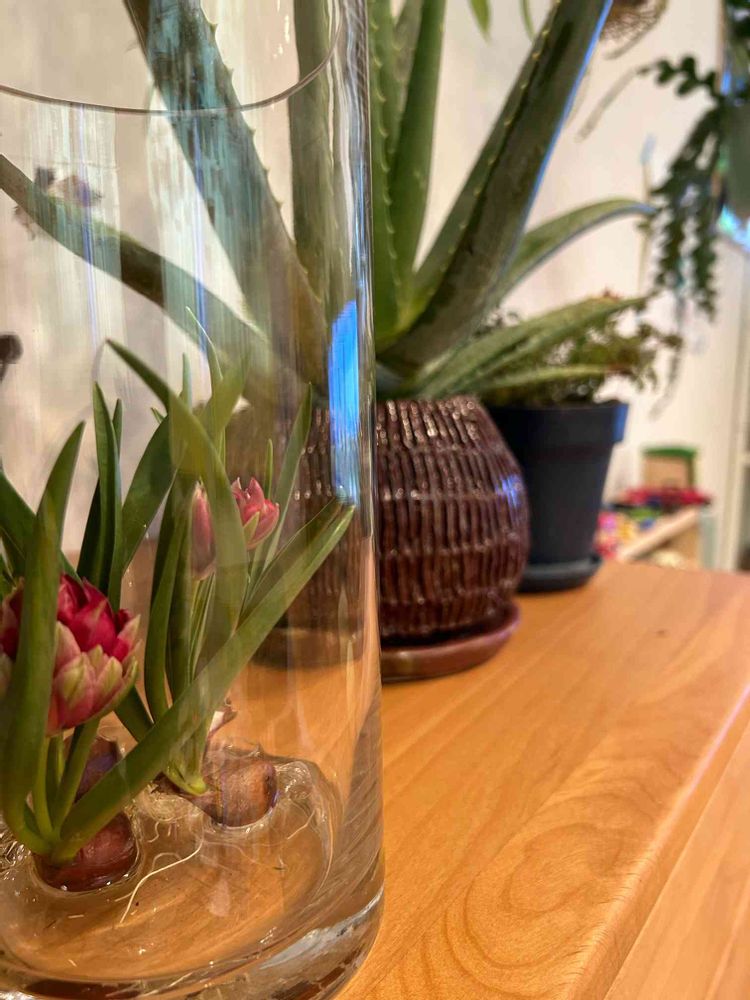 ミニチューリップの水耕栽培、可愛いです😍😍😍