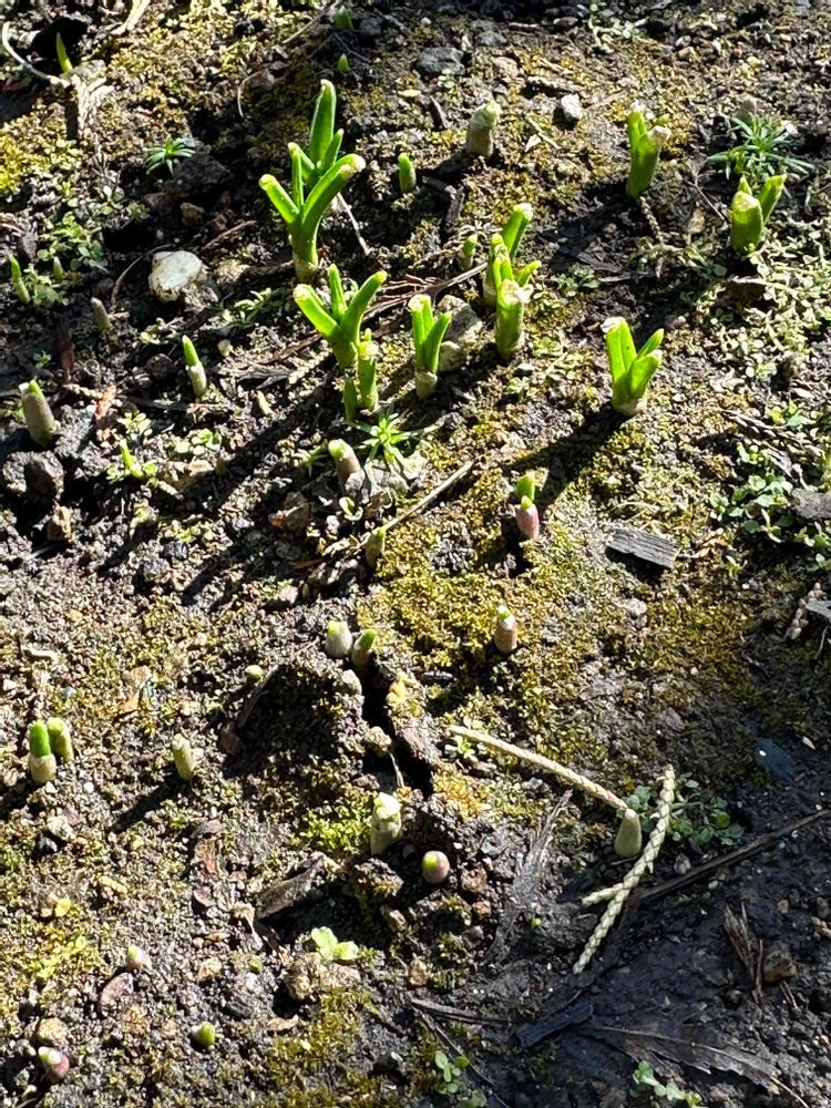 地面を押し上げてシラー カンパニュラータが顔を出し始めました✨