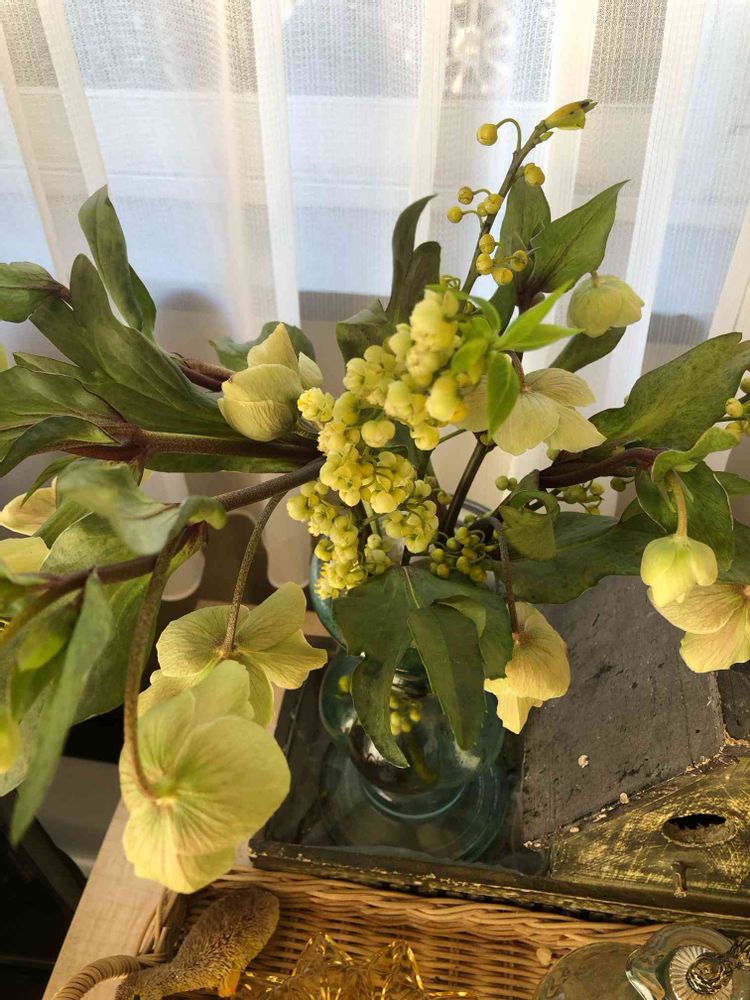 クリスマスローズとアオモジの色合いがいい感じ💛