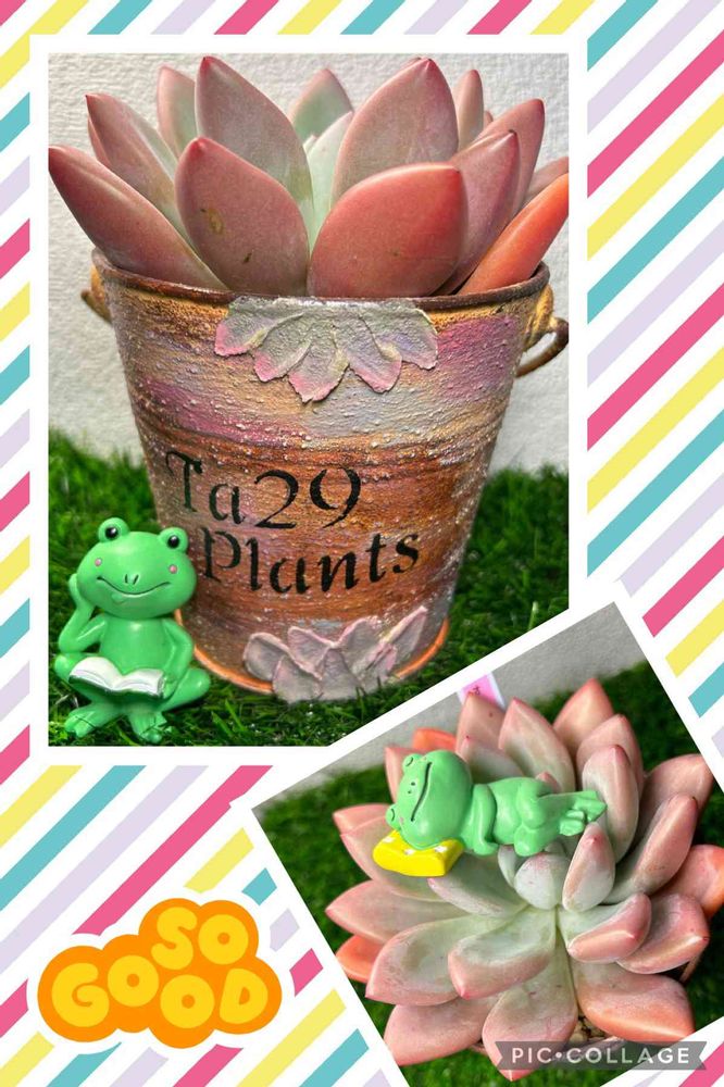 ぷくぷくの多肉ちゃんの上で、お昼寝気持ちよさそう🐸♡