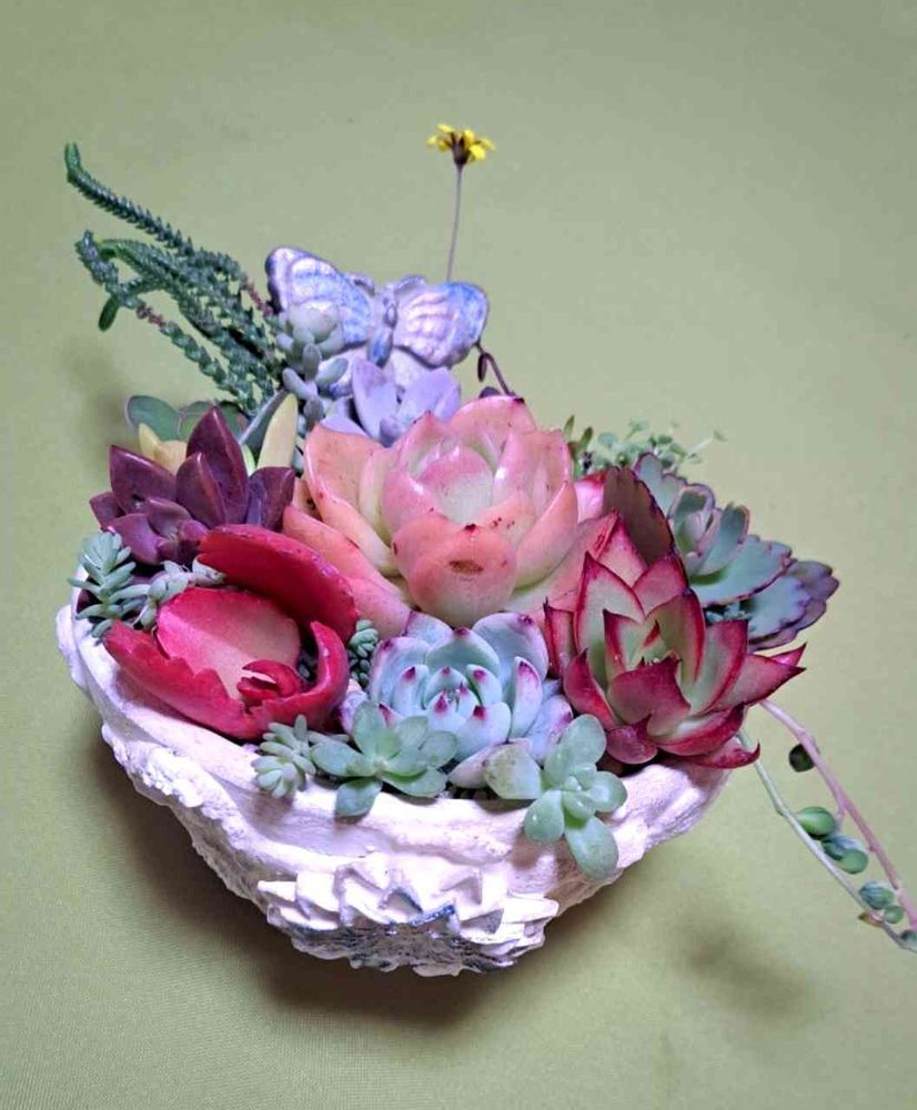 かおりんさんの、リメイク鉢(🦋付き✨️)に、ちょっと派手めな多肉ちゃんを、集めてみました😍