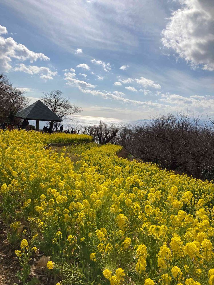 菜の花と相模湾がとても綺麗に見渡せます。