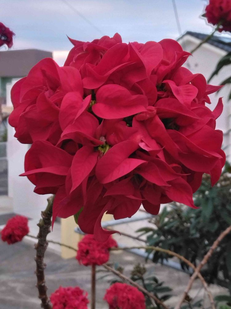 形が 変わってますけど ポインセチアっぽいですね!茎の感じも ポインセチアっぽいですね😌豪華なポインセチアって感じです🥰🫶💕