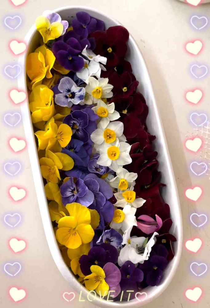 昨日花友さんが花手水を見せてくれたので〜ふと思い出してキレイどころを集めてお弁当みたいに並べましたよ〜🤣笑
