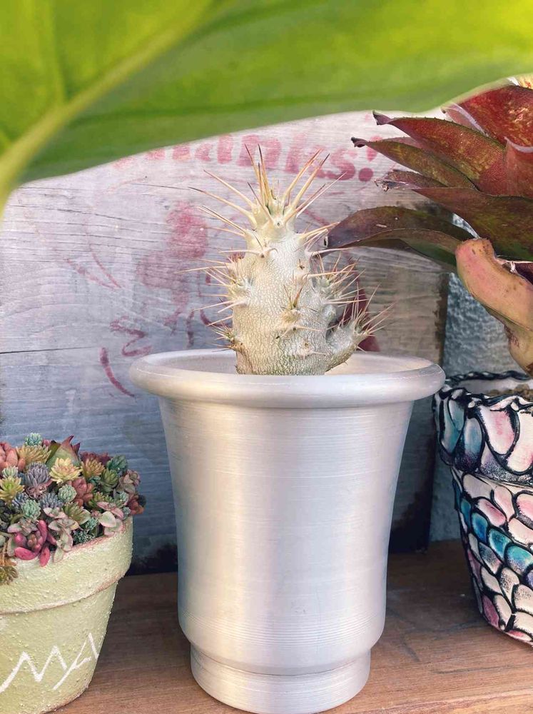 シルバーな鉢と白いパキポが神々しい✨️✨