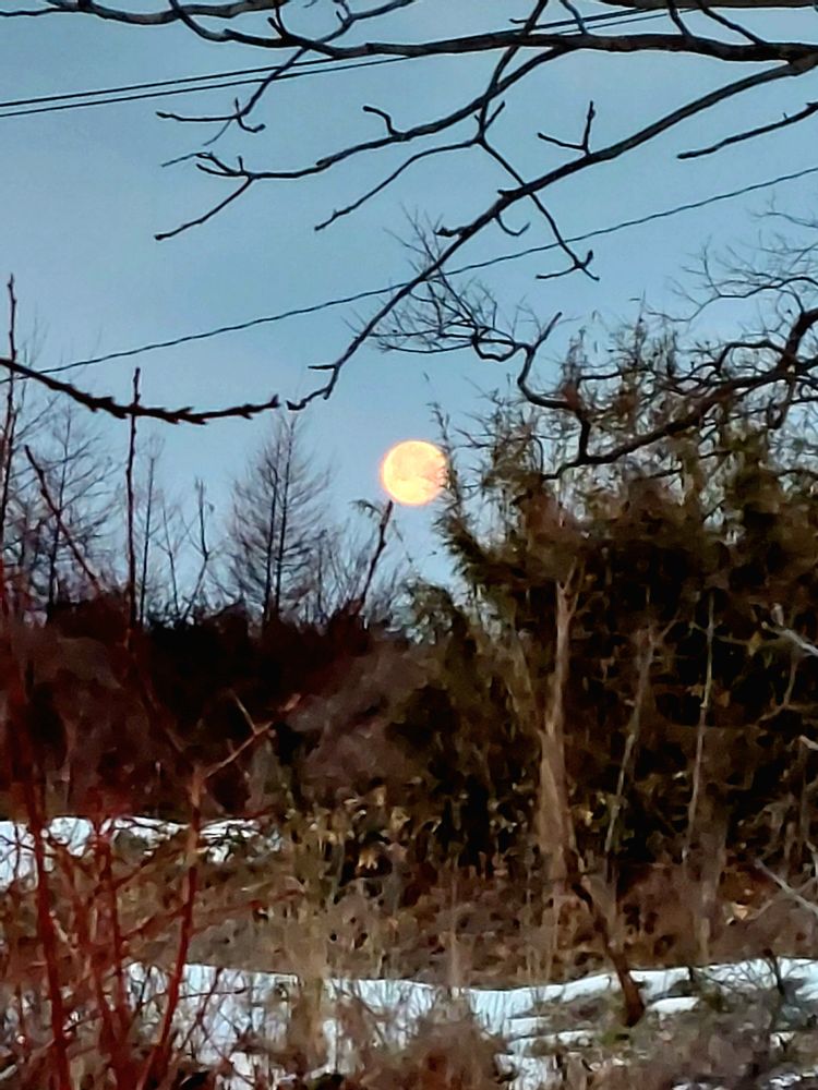 満月が登るの見逃して、心残りで裏山を歩いていたら出会えました🌕