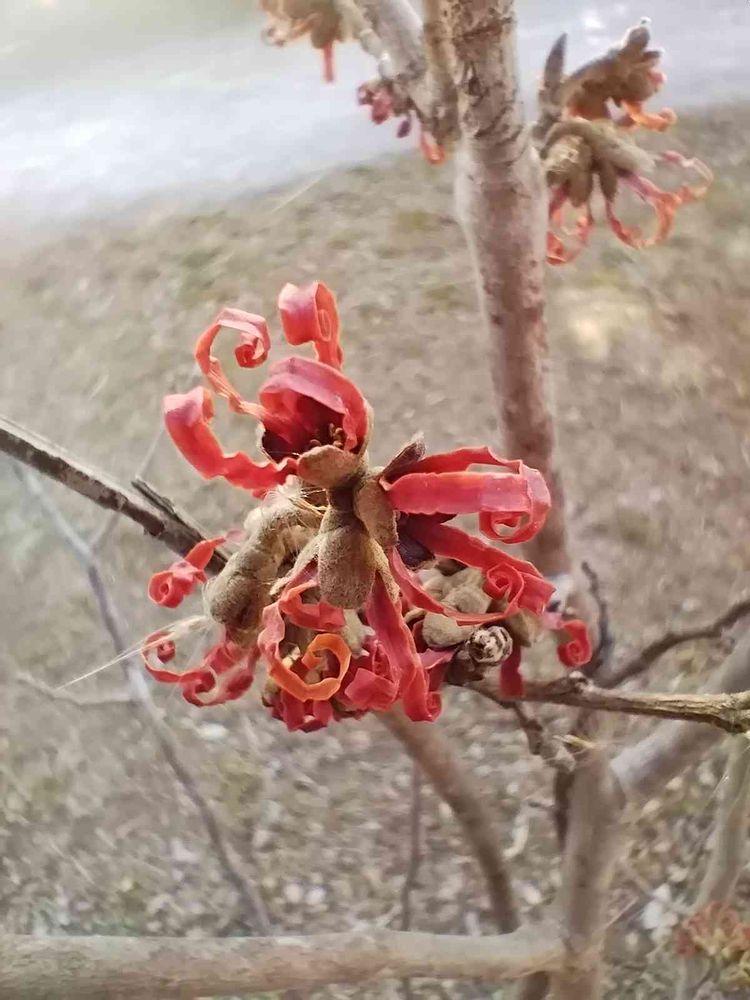 黄色じゃなくて赤いので、“ベニバナマンサク”のようです。春はもうすぐ🎶