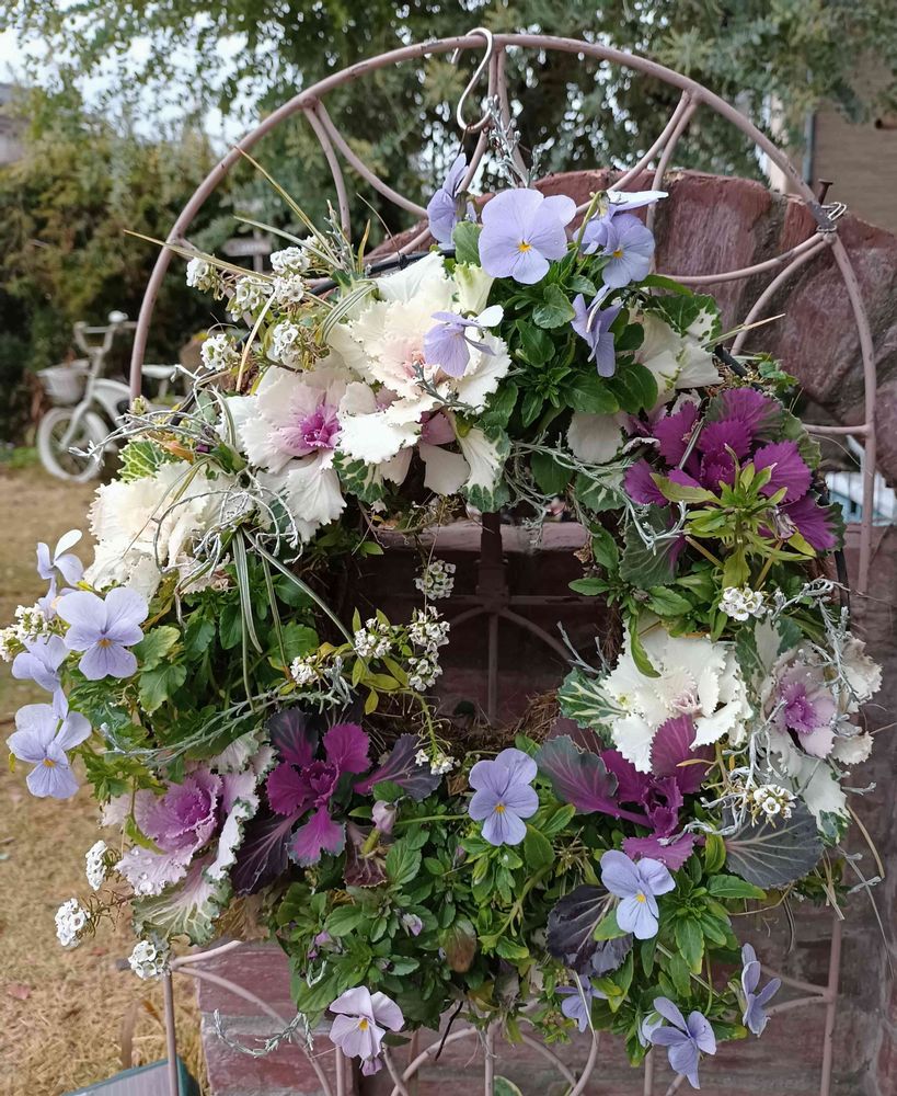リースに直播きではないんですけど、できた小苗を使って秋に寄せ植えしたんです😊