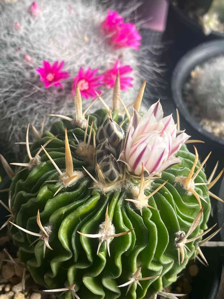 縮玉はもっと紫みが強いお花が咲く子が多いみたいだけど、うちのは白っぽいです😅