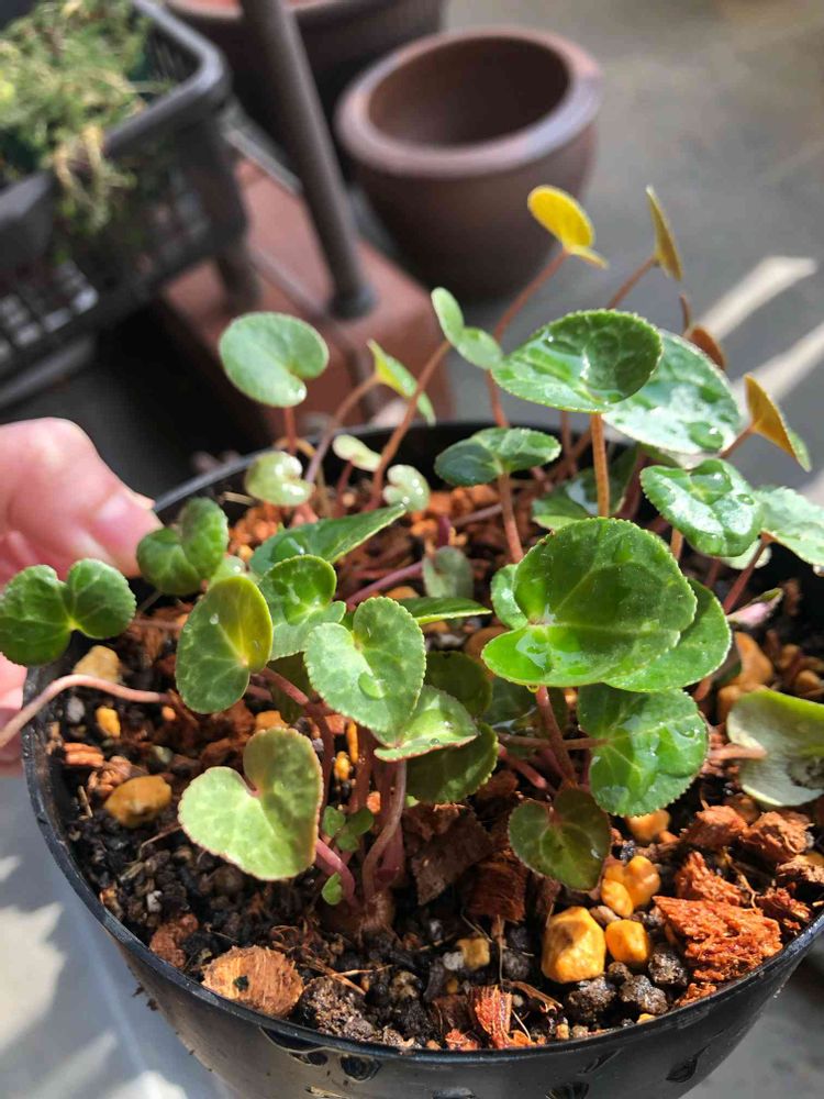 ミニシクラメンの実生も球根が1センチ位になったのは別の鉢に植え替え。