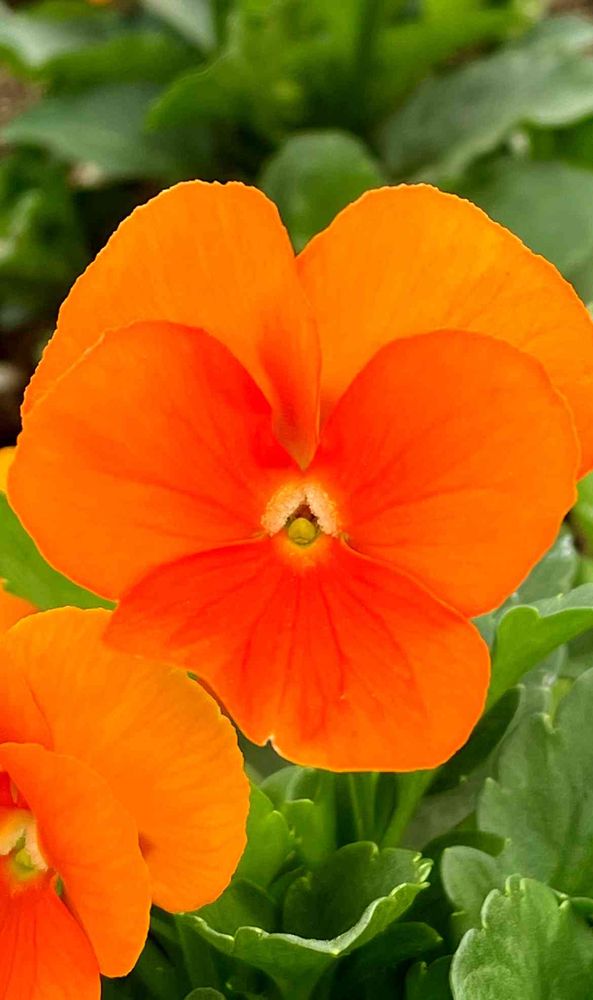 このオレンジ色のパンジーは、とてもシンプルでそのブロッチがありません