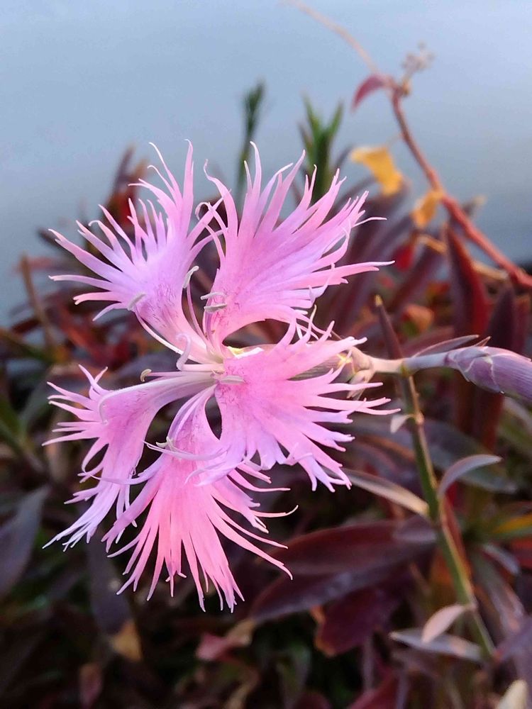 撫子1月の暖かい日から蕾が膨らみ始め一つか二つずつゆっくり咲いてます,(*˘︶˘*).。*💞💞