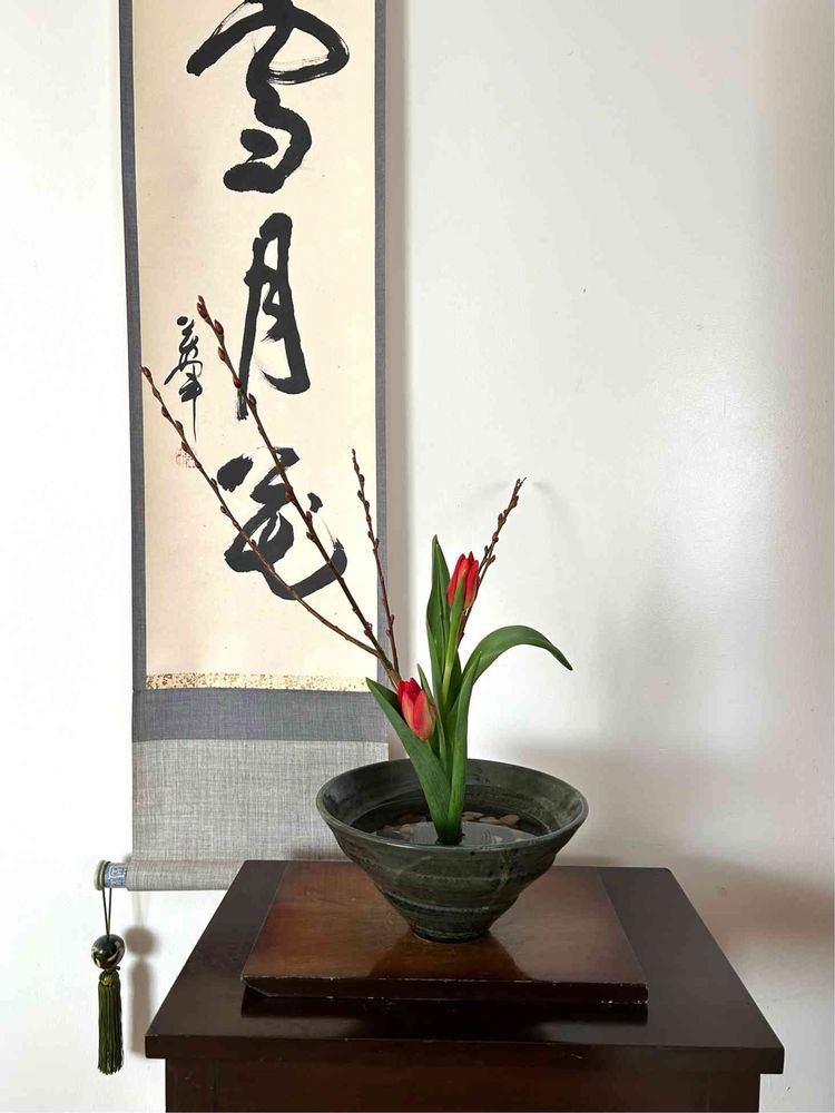コメントありがとうございます。生け花の世界では柳とチューリップの組み合わせは定番なんです。菜の花とチューリップも合わせたりします。この辺りは春が遅いので、地物はまだまだ先です。菜の花はアメリカで売っているのを見たことがありません。