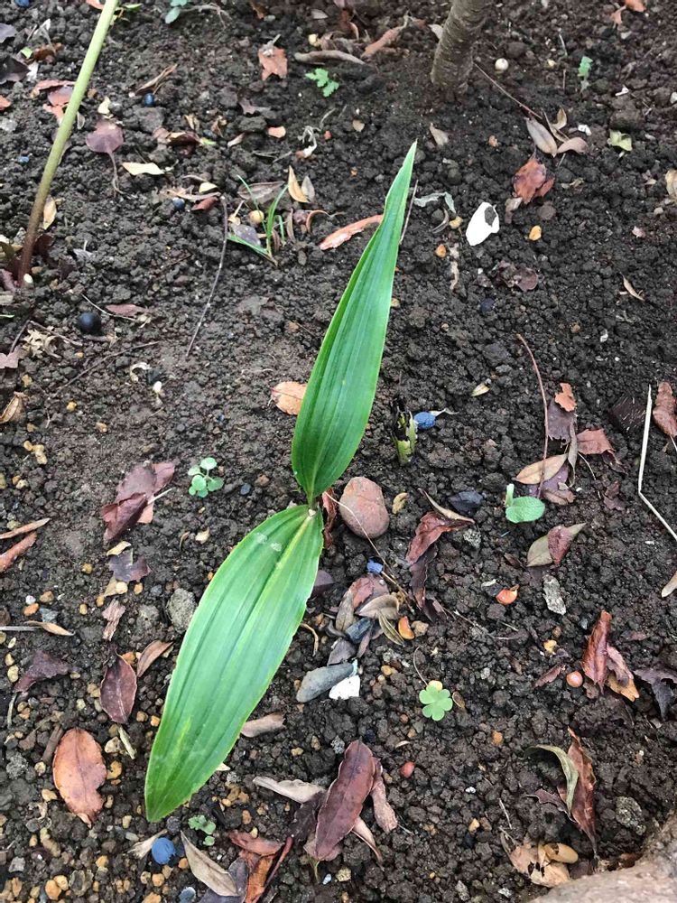 花が無いと葉っぱだけでは分かりませんよね。これはつい先日の我が家のサイハイランです。「えっ、サイハイラン は葉っぱが一枚のハズ❣️」と思いますよね。でも、図鑑にはしっかり葉っぱは1〜2枚と載っています。なお、左上の茎はクリスマスローズで、サイハイラン葉の直ぐ左の小さな葉っぱはタツナミソウの発芽苗です。