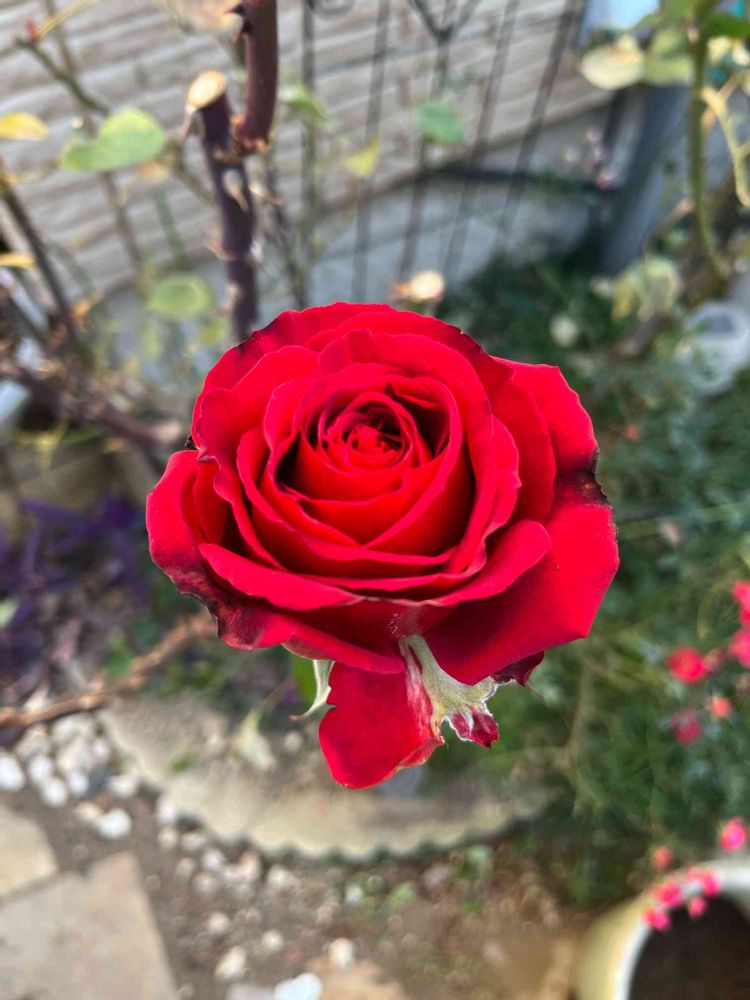 剪定が遅れ、見納めとなった真っ赤なバラです😅
