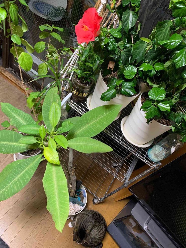 プルメリアやハイビスカス🌺頑張っているね😍植物から元気をもらってプアちゃんから癒やしをもらってね🤗