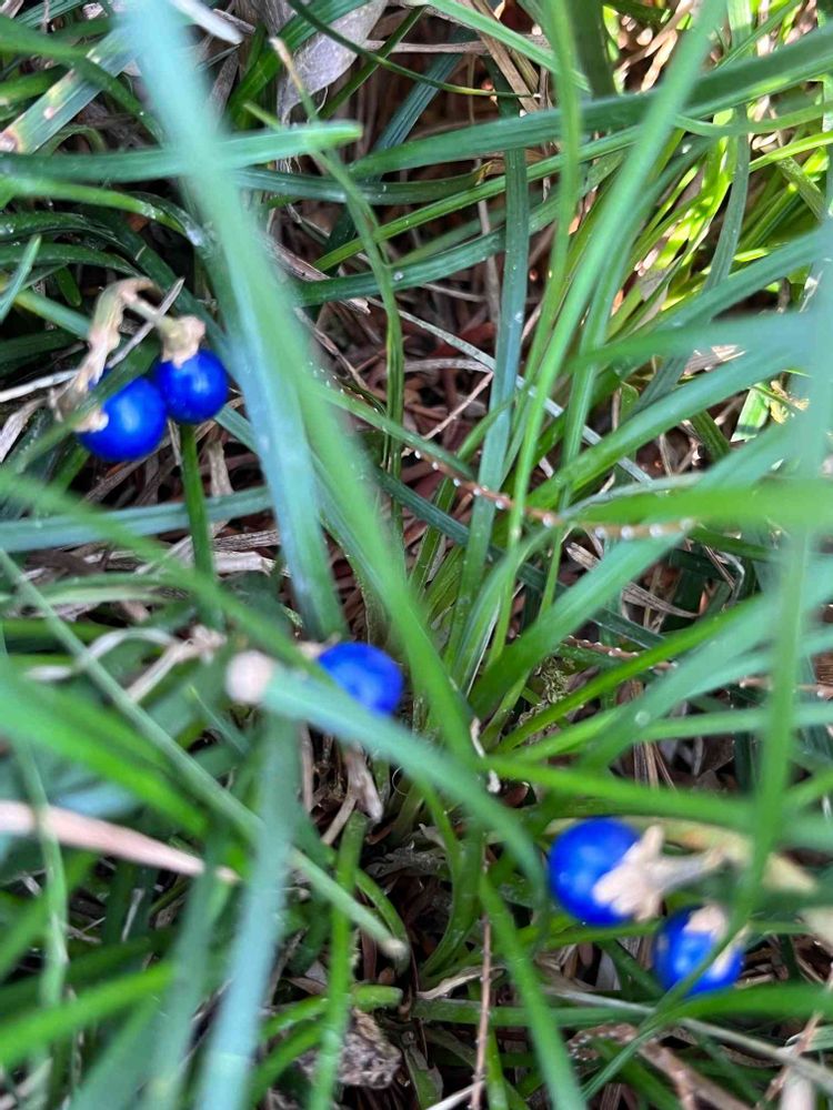 こんもり繁った葉っぱの中から偶然見つけた竜の髭の実、もっとたくさんの実を探しましたが、チラホラしか見つかりませんでした。😅