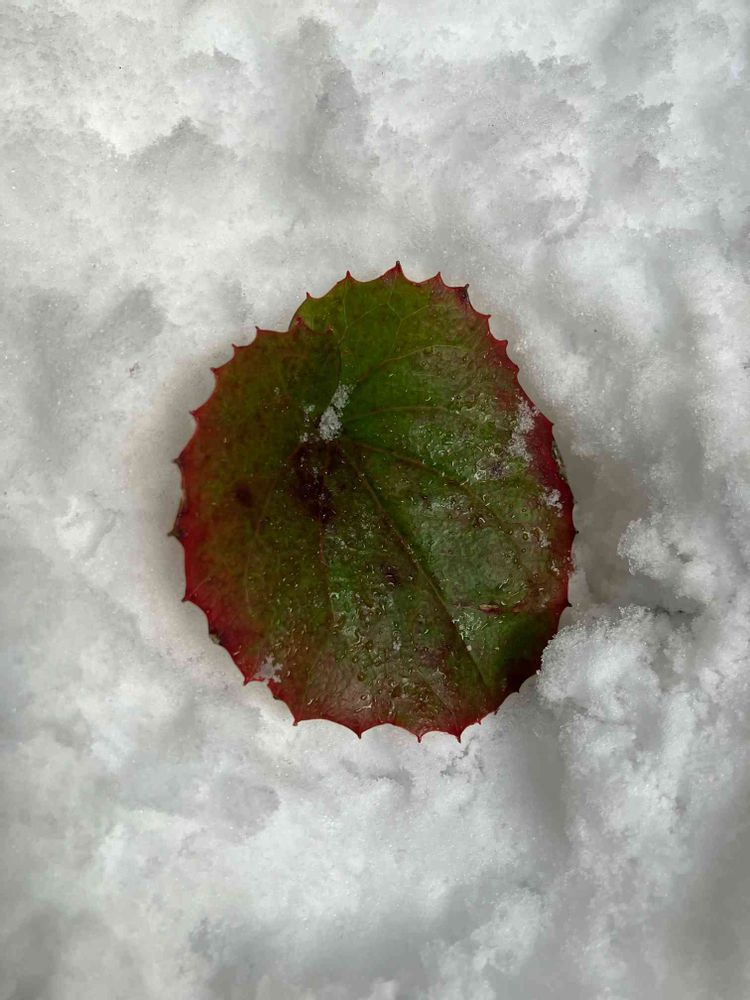 雪❄の中のイワカガミの葉っぱ🌿可愛い〜です。