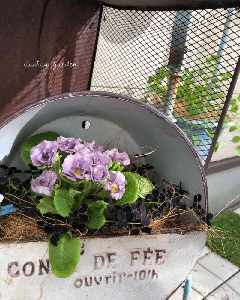 プリムラジュリアンとクローバーの寄せ植え💜🖤