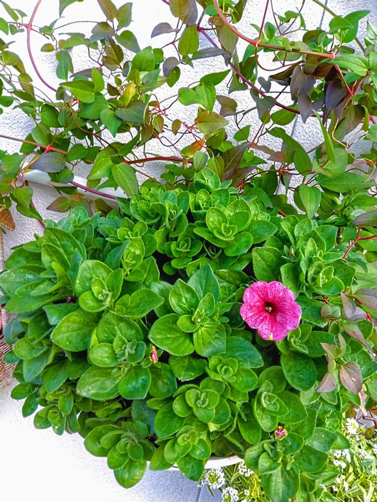 ペチュニアとセンニンソウの葉っぱのコラボですね👍👍👍