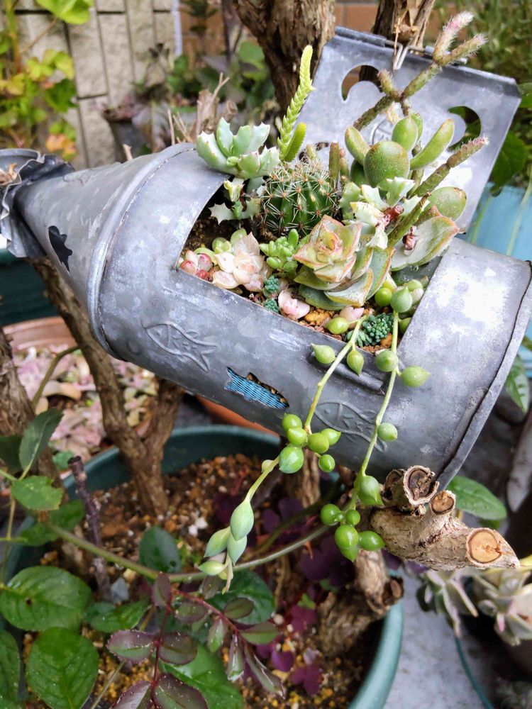多肉の寄せ植えの入れ物 ブリキでしょうか❓味があるね〜^_^