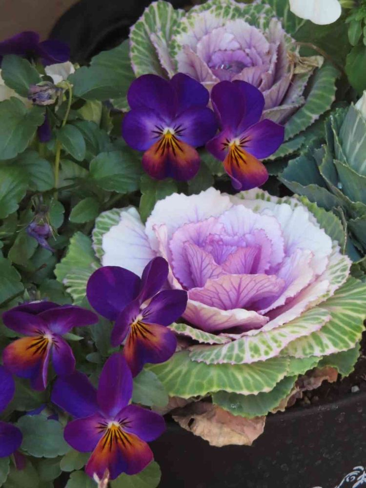 鉢植えのハボタンとビオラがシックな感じで素敵です。
