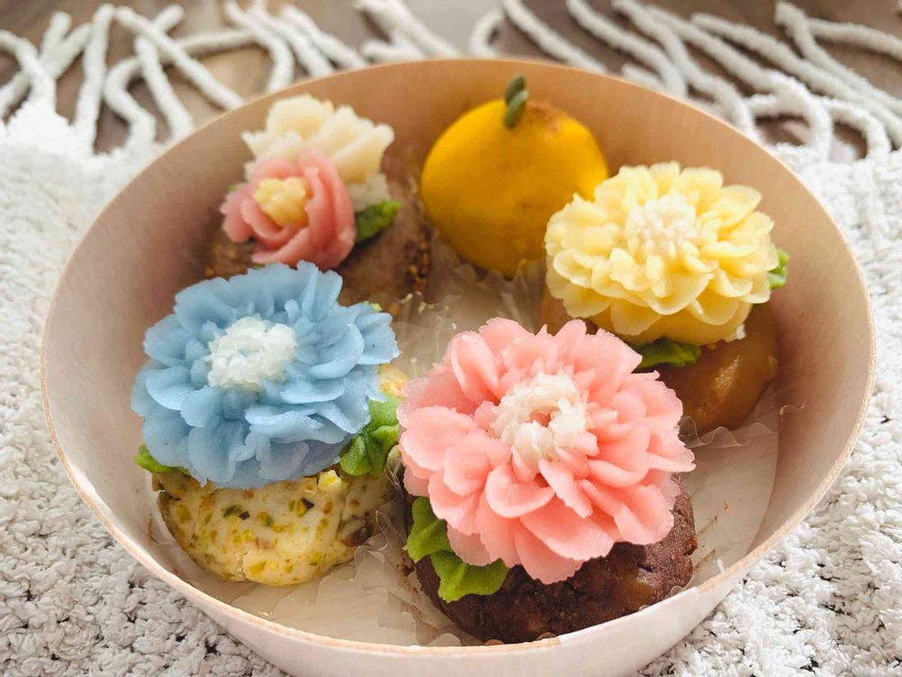 白あんに天然パウダーで色付けして作っているそうです🥰本物のお花みたいですがあんこでおいしかったです!