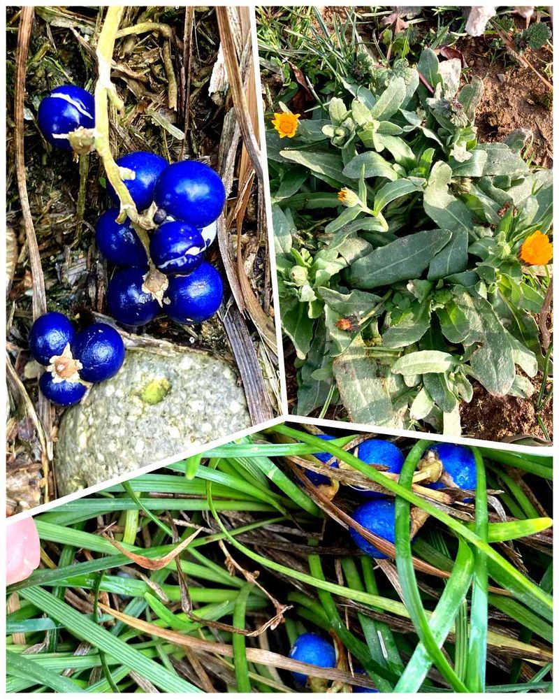 ジャノヒゲの実もフサフサの葉に守られて、まだツヤツヤピカピカ✨