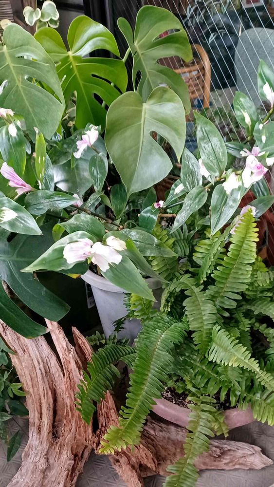 モンステラも綺麗だわ。シダみたいなのも綺麗。🌿🌿🌿