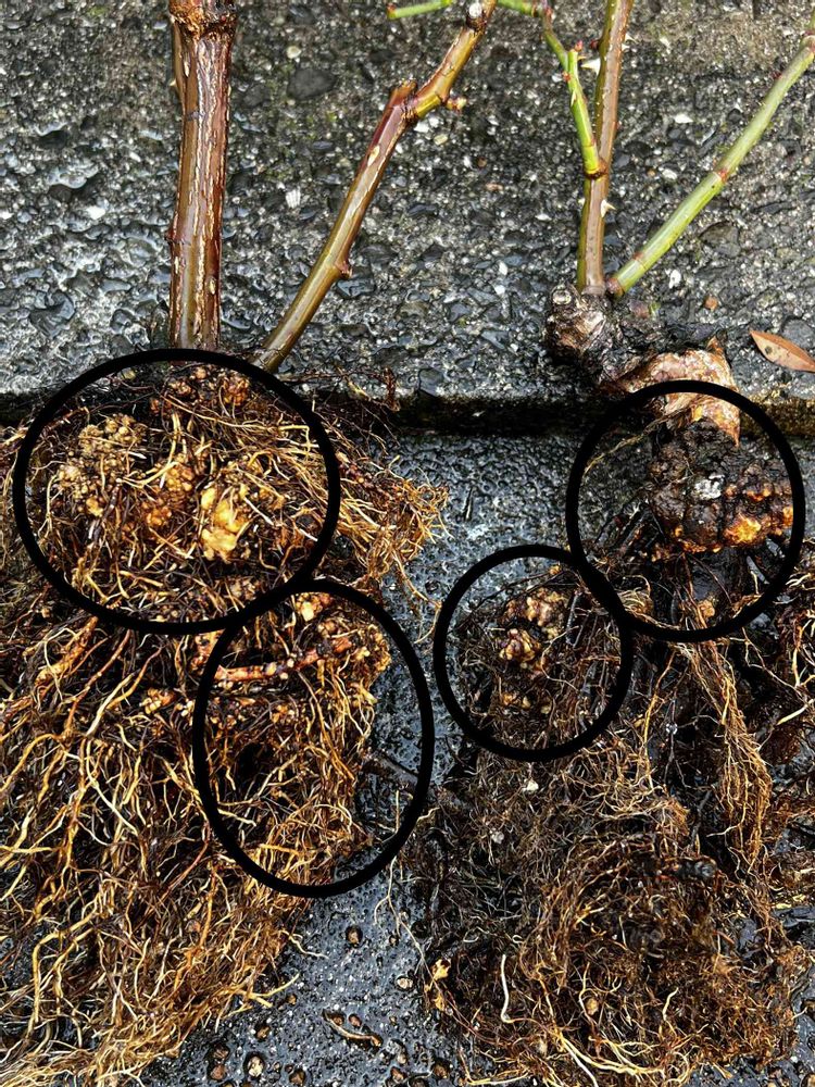 3年前、春薔薇終わり、植え替えをした時にクラウンの所に癌腫が出来ていて、取り除き、ハイターを直に噴霧して、半日水に漬けて枝もゲンコツ剪定をして秋には、復活して花咲いたんです。