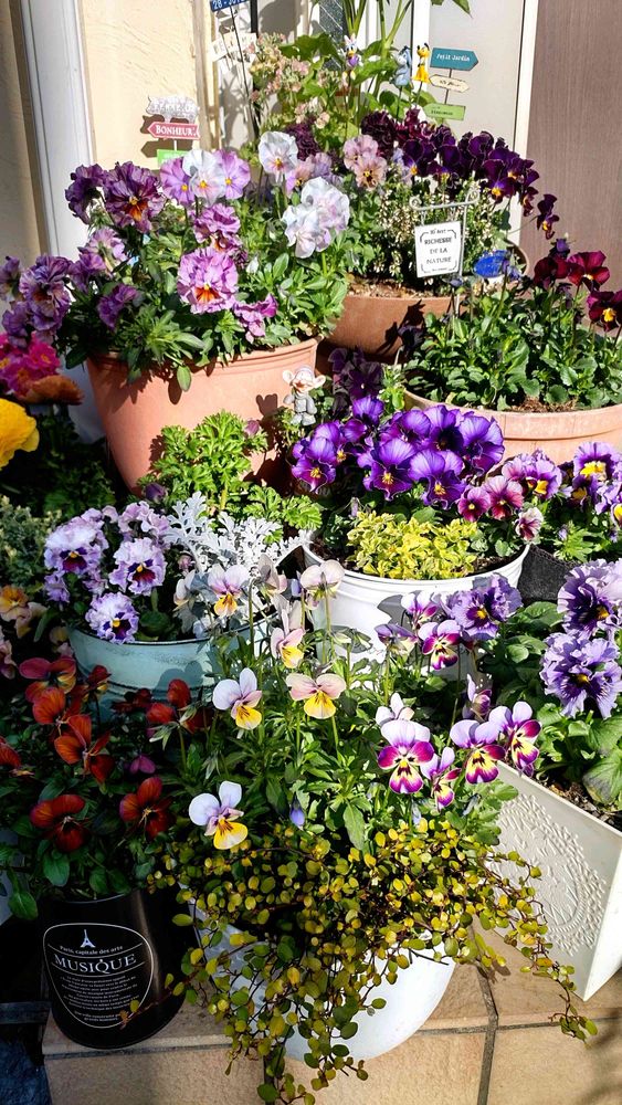 圧巻の美しさ😍特に手前左のブラックの鉢&ビオラはめちゃおしゃれ✨✨✨
