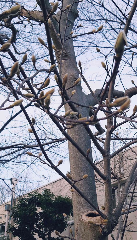 蕾が上を向いてるからハクモクレンだと思いますけど😅