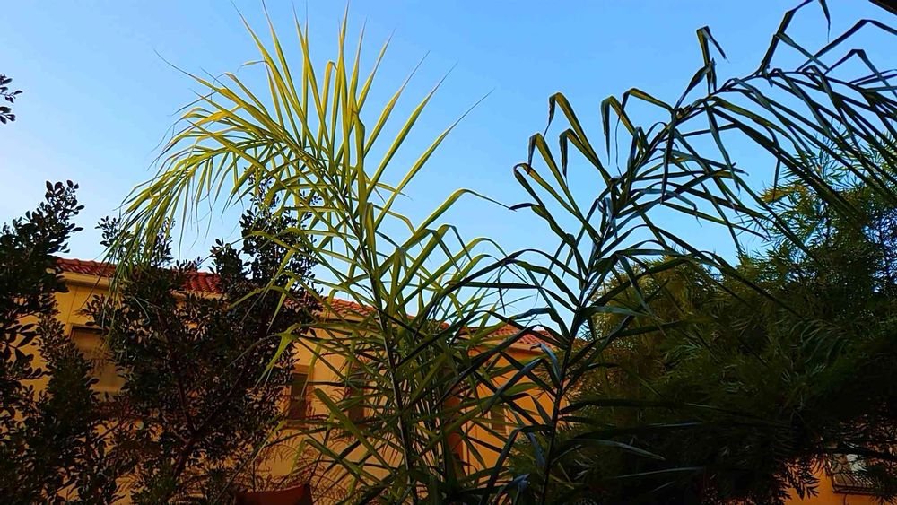 だいたいは鉢ですが、地植えしているものあります。この女王ヤシは鉢植えですが、おそらく鉢底から根を下ろしてると思います。